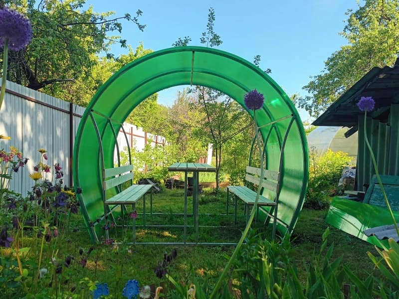 Беседки из поликарбоната обладают рядом преимуществ, делающих их привлекательным выбором для устройства дачных участков. Этот материал обеспечивает отличную защиту от ультрафиолетового излучения, при этом сохраняя высокую степень прозрачности. Кроме того, поликарбонат – легкий материал, что упрощает монтаж и создает возможность для различных дизайнерских решений.